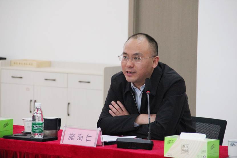 施海仁致欢迎词,向各位领导对公司的帮助与支持表示感谢,他认为通过“政校企”三方聚力合作,将充分发挥多方优势,在市政污水、工业废水、中水回用、水环境治理、固废处理及智慧水务等相关技术领域建立深度合作,为中盛水务的战略转型和技术创新助力、添彩。