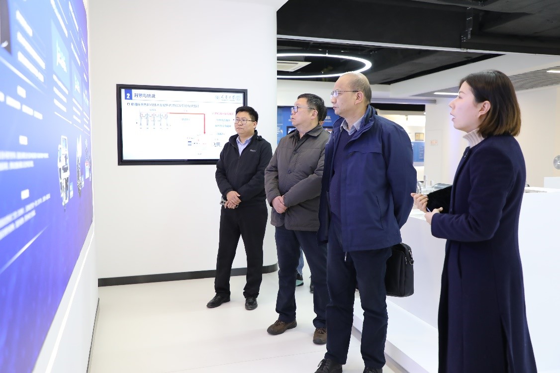 座谈会前,滨湖管委会一行参观了天大研究院展示中心,观看了宣传片,听取了天大研究院发展历程介绍,了解了各入驻项目的发展近况及市场前景。