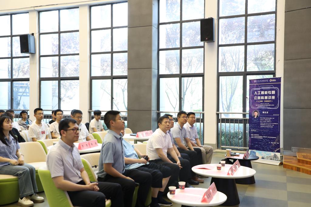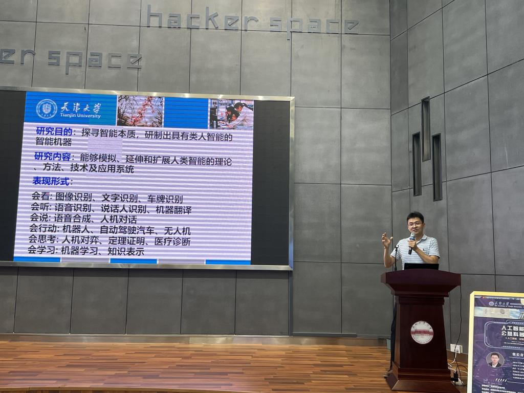 6月14日,在合肥市科技局、经开区管委会的指导下,天津大学合肥创新发展研究院(以下简称“天大合肥院”)联合合肥工业大学共同主办的“人工智能·安徽高校行”首场公益科普讲座顺利举行。合肥市科技局党组成员、外国专家局局长梁大群,合肥工业大学本科生院副院长兼创新创业教育处处长李军鹏出席并致辞,合肥市科技局人才处一级主任科员吴剑、经开区经发局科技创新处主任王瑞鹍,天津大学智算学部博士、高级工程师马国宁,我院科技研发部部长张云化及有关技术经理人、工程技术人员参加讲座,现场参加讲座学生50余人。讲座由合肥工业大学大数据中心主管杨宏彬主持。