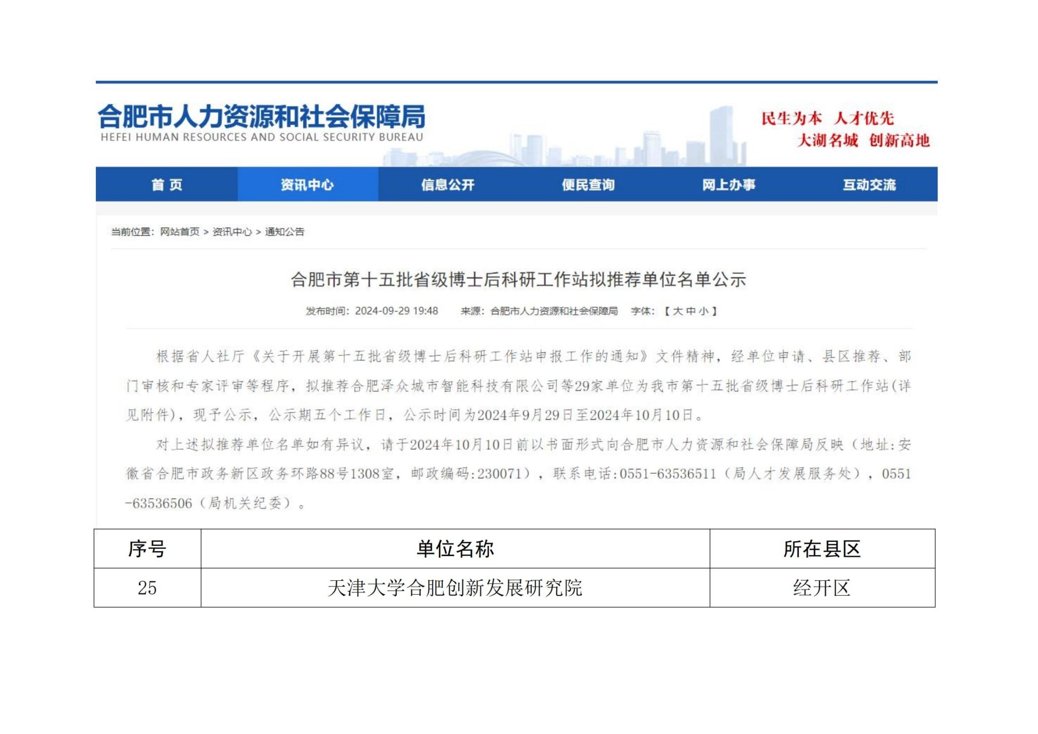 天津大学合肥创新发展研究院(以下简称“天大研究院”)再添殊荣。近日,天大研究院成功获批安徽省博士后科研工作站荣誉资质,标志着我院将在人才培养、科研创新、成果转化等方面迎来新的发展阶段,为区域社会经济发展注入了新的活力。