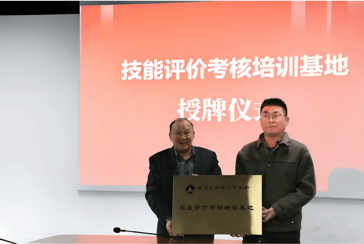 仪式上,安徽工业经济联合会为我院授牌“技能评价考核培训基地”。此次授牌标志着我院及孵化公司在职业技能培训与社会服务领域的功能拓展迈出新步伐,也为后续开展更广泛、更深层次的产教融合与人才共育奠定了坚实基础。