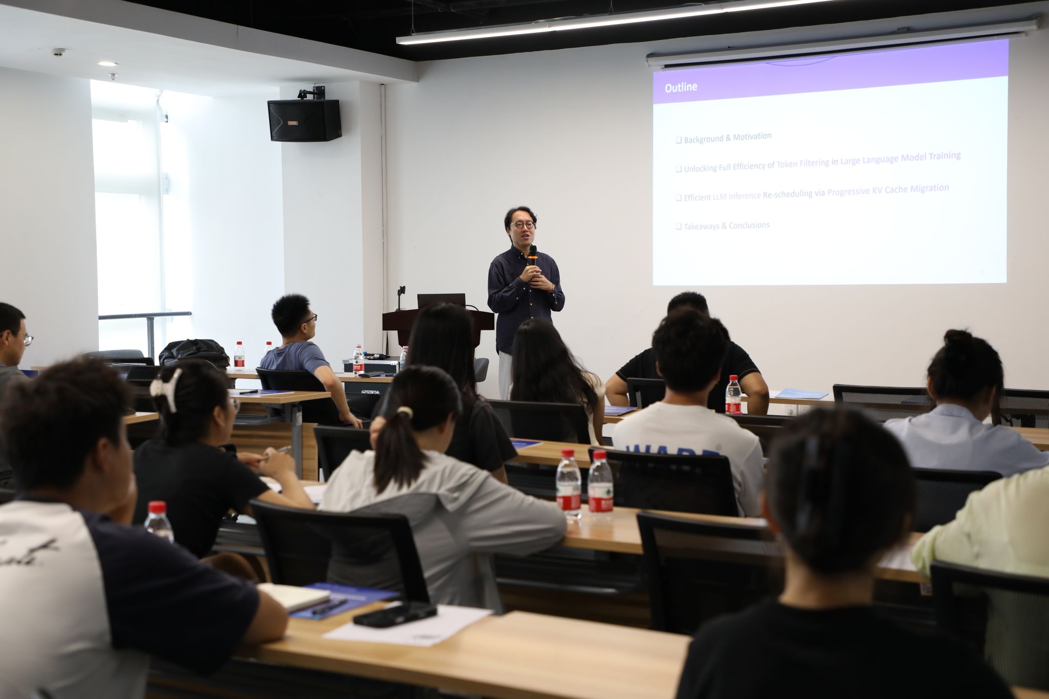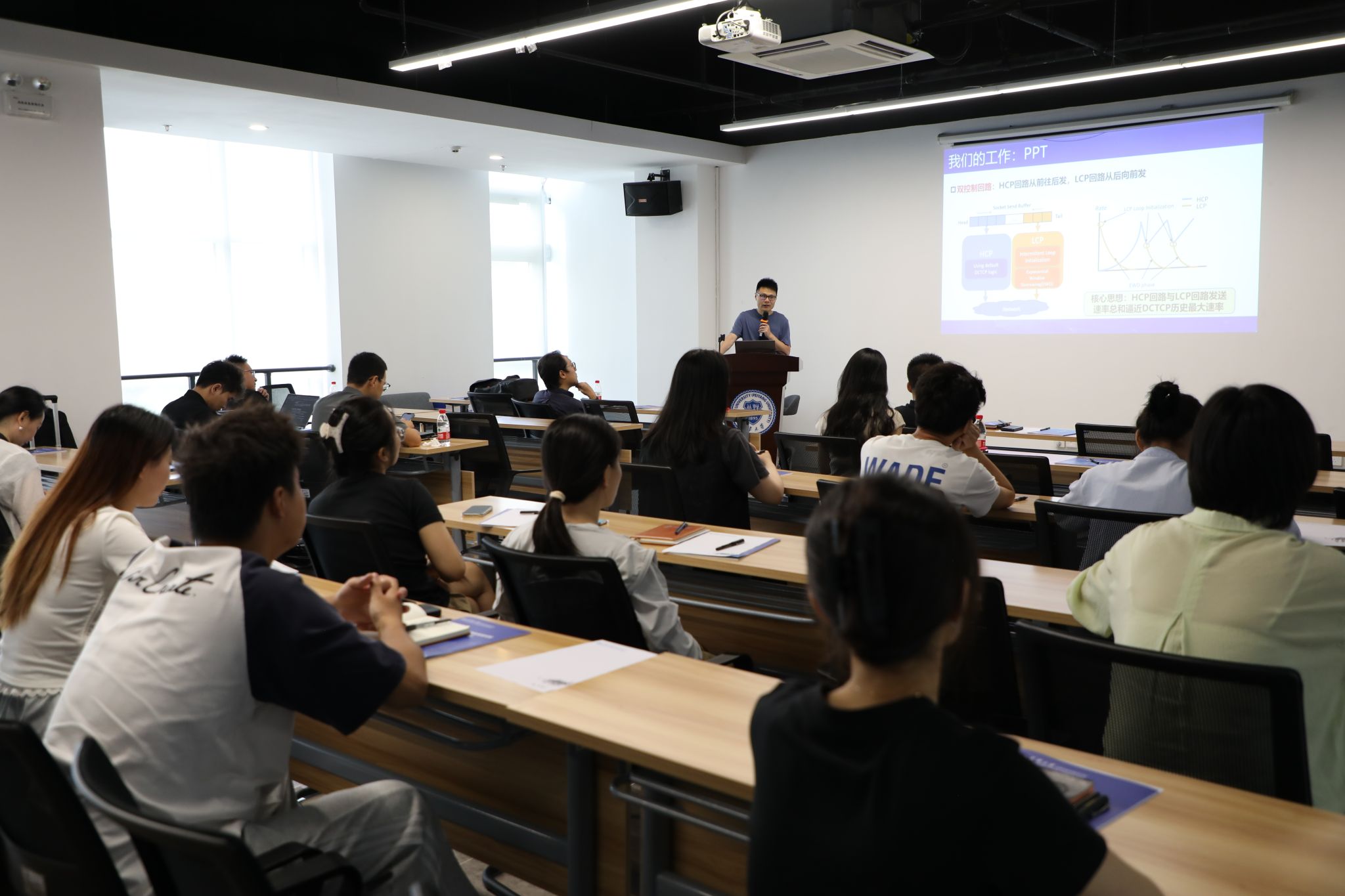本期大讲堂直指当前大模型与分布式智能计算爆发式增长背景下的关键挑战——算力效能提升。为此,活动特别邀请到天津大学教授李文信、中国科学技术大学特任教授张骏雪进行专题分享。两位专家分别从RDMA如何攻克智算中心网络拥塞和LLM如何从“无效Token”中榨取算力两个关键维度,为解决智算效能瓶颈问题提供了极具价值的前沿洞见与技术方案。讲座吸引了来自联宝科技、曙光智算及上下游产业链企业的工程师、技术骨干参加,现场交流气氛热烈,反响良好。