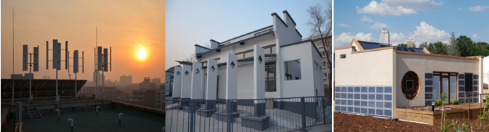 (d) 垂直轴永磁风机 (e) 燃料电池小屋 (f) 智能家居小屋