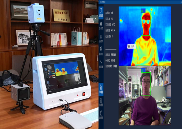 天津大学微光机电系统技术教育部重点实验室研究的基于低成本红外成像AI多点测温与高分辨率1080p可见光视频融合和实时温度校验技术,应用于红外人体温度筛查,可以高精度无接触快速测量大范围场景下的人群温度,实现多种场景下的人体温度检测功能,包括火车站等公共通道口、单位及企业等单位通道和人流密集的自由场所等。系统配有人性化的人体温度监测报警系统,配合使用者的身份证,能实现便捷的人员信息自动登记数据库管理,并且提供多种身份验证方式,记录姓名、性别、进入时间,当时体温等多种信息。