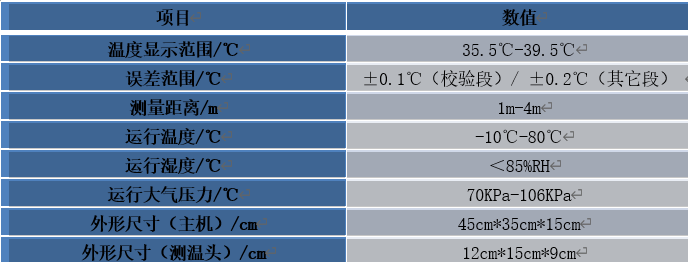 3. 高精度人体测温,校验距离段,测温精度优于±0.1℃,其它测温段测温精度优于±0.2℃;