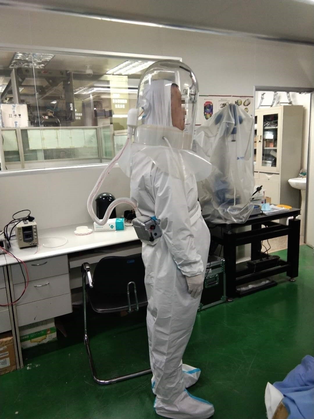 实验室科研团队在2003年承担抗击非典应急攻关项目“医用正压式防护头罩及全隔离呼吸系统”,积累了丰富的研制经验和相关产品开发技术储备。对便携式集成温度控制及调谐、气压监测及控制、湿度调节等先进防护服相关集成技术具有实战经验。
